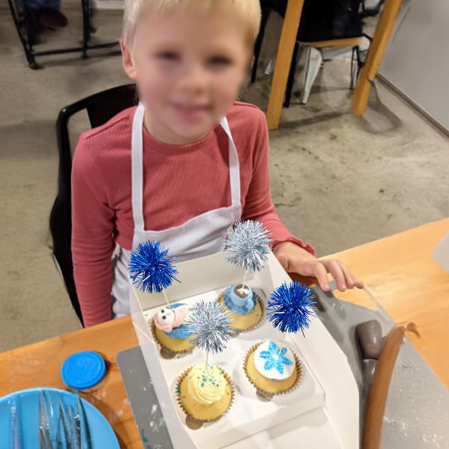 Ephlyn 30Pcs Foil Firework Cupcake Toppers Party Birthday Cake Toppers Supplies Sparkle Tinsel Cocktail Fruit Toothpick for Birthday Wedding Graduation Party Supplies Dark Blue Silver
