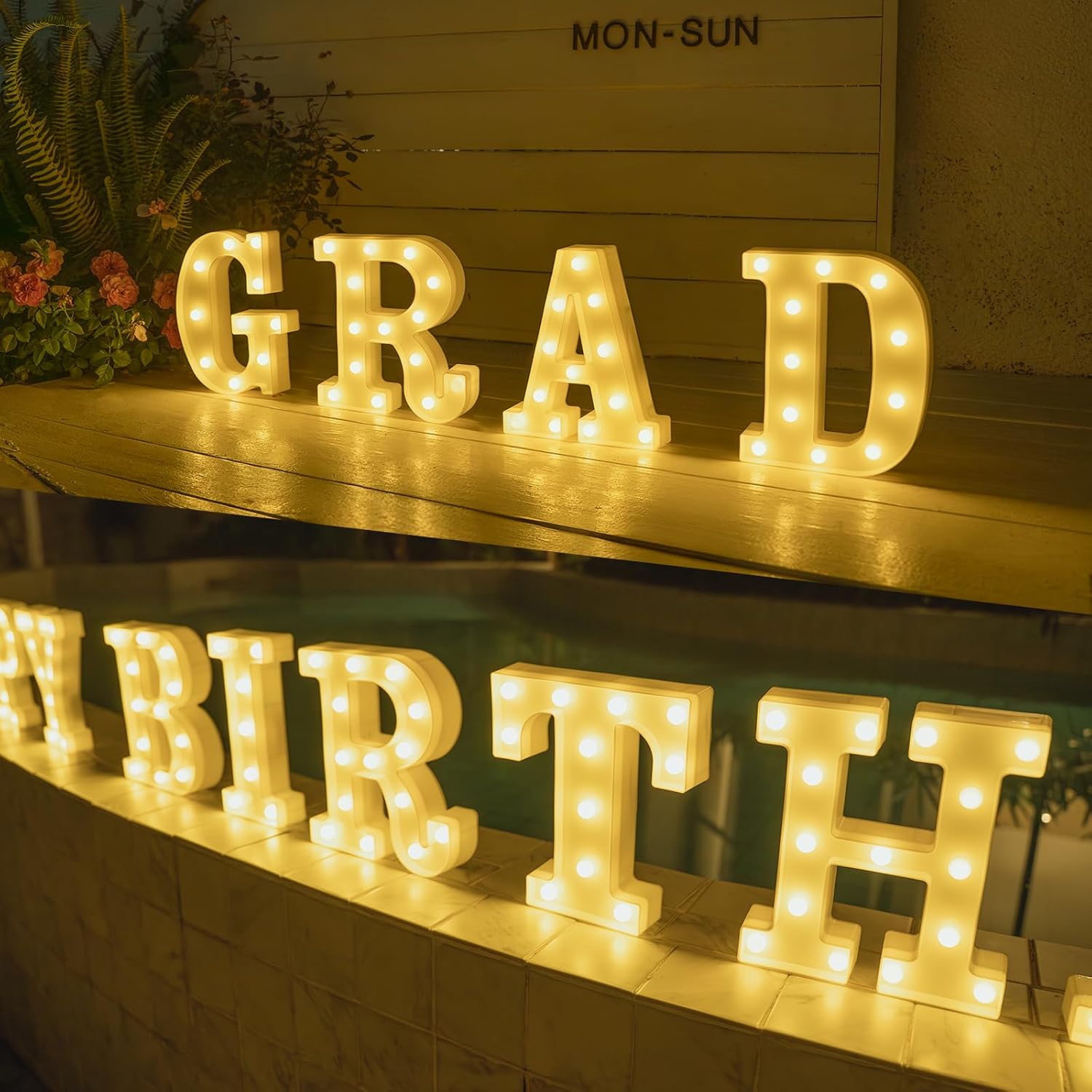 Foaky Rechargeable LED Letter Lights Sign Marquee Light Up Letters Sign for Night Light Wedding/Birthday Party Christmas Lamp Home Bar Decoration (T)