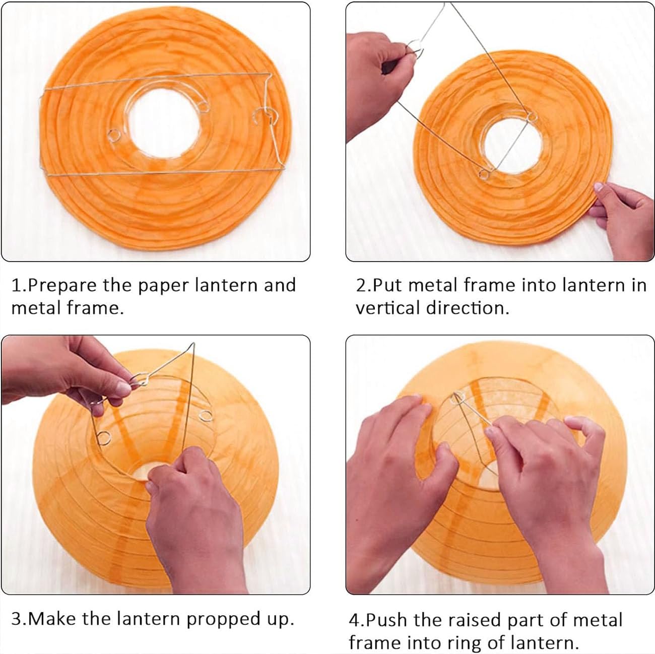 - Decorative lanterns are made of rice paper and a metal frame. Each lantern includes a sturdy metal stand that can be hung anywhere