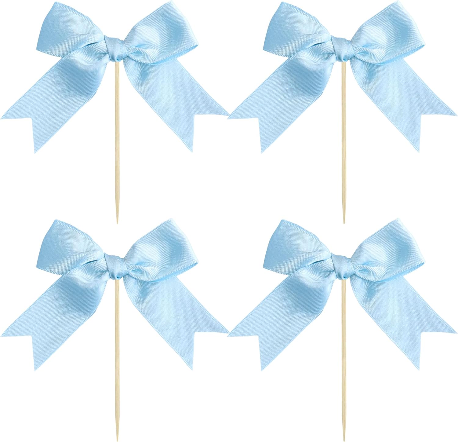 - --Premium Material: These Bow Cupcake Toppers are made of high quality polyester satin ribbon, very safe to put them on cakes, cupcakes, ice cream, fruits, pie, dessert, cheese or any dish and food appetizer you want to decorate bow theme party decorations.