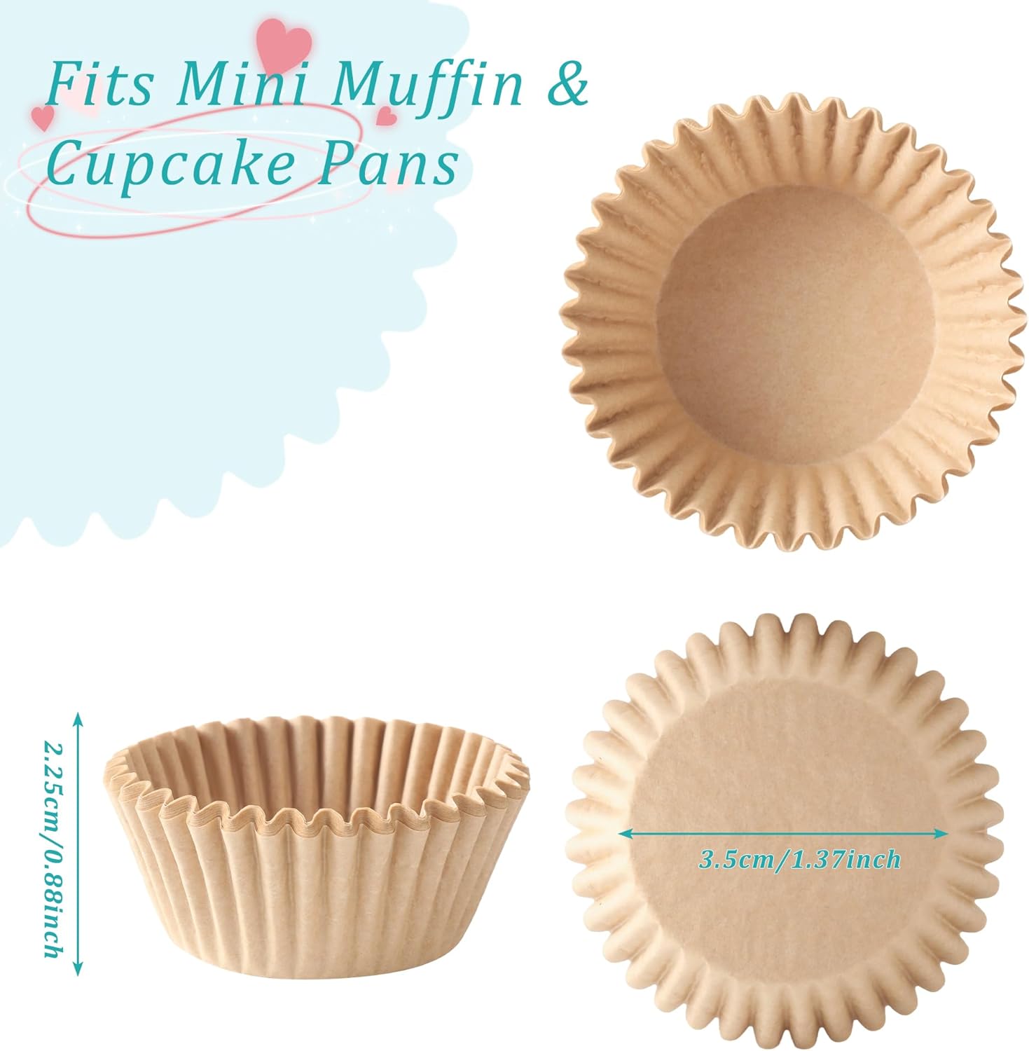 - Size/Color: Package includes 1000 pieces natural parchment cupcake liners. The bottom diameter is 1.37 inches (3.5 cm) and the height is 1.18 inches (2.25cm), fitting perfectly into a standard muffin or cupcake pan.
