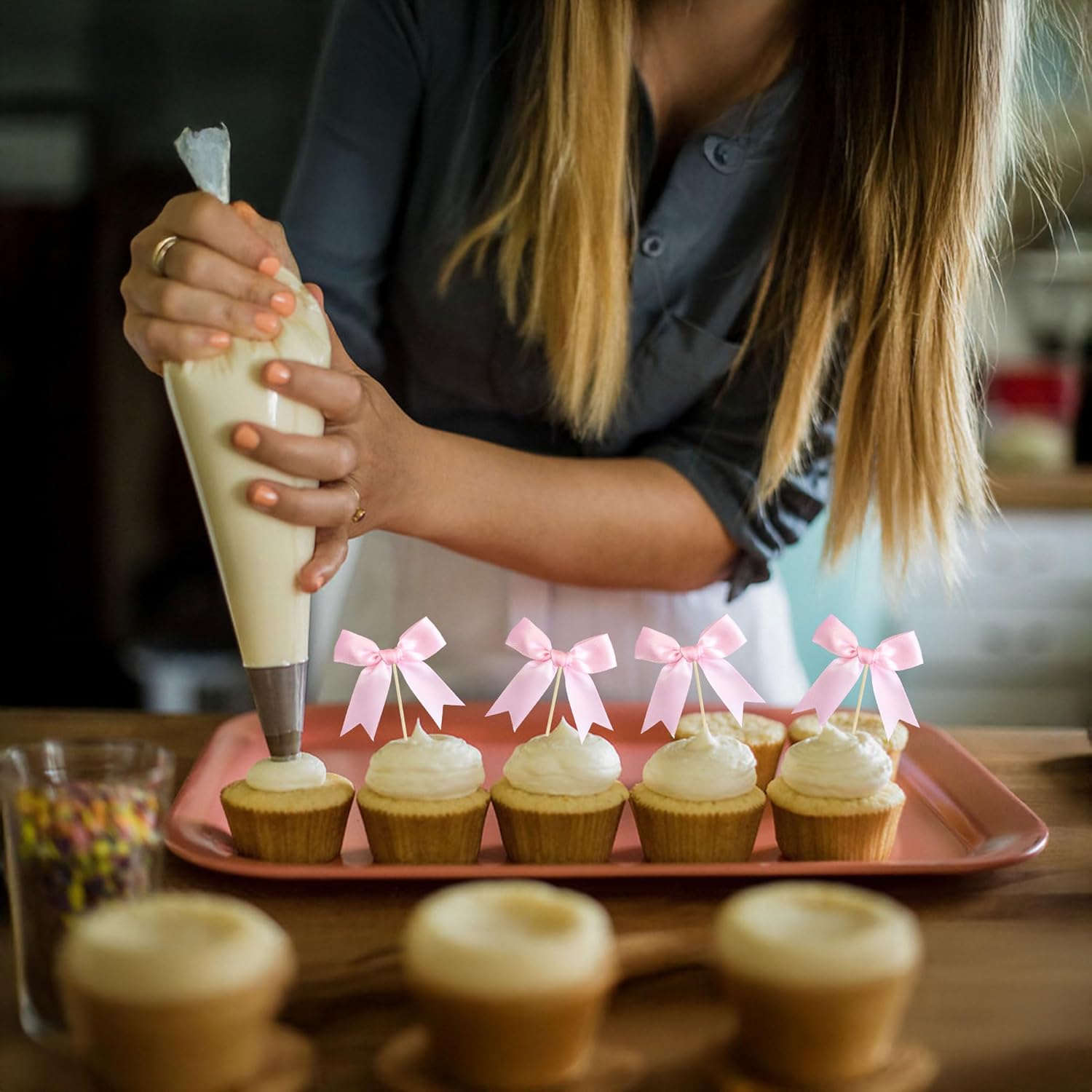 - 【NO DIY Required】: Bow Cupcake Toppers can put in the cake directly! Bow Cupcake Toppers save your time and super easy to use. You can easily dress up your cakes, yes! but don't stop there, put them into desserts, cookies, fruit pieces, appetizers, muffins and so much more!