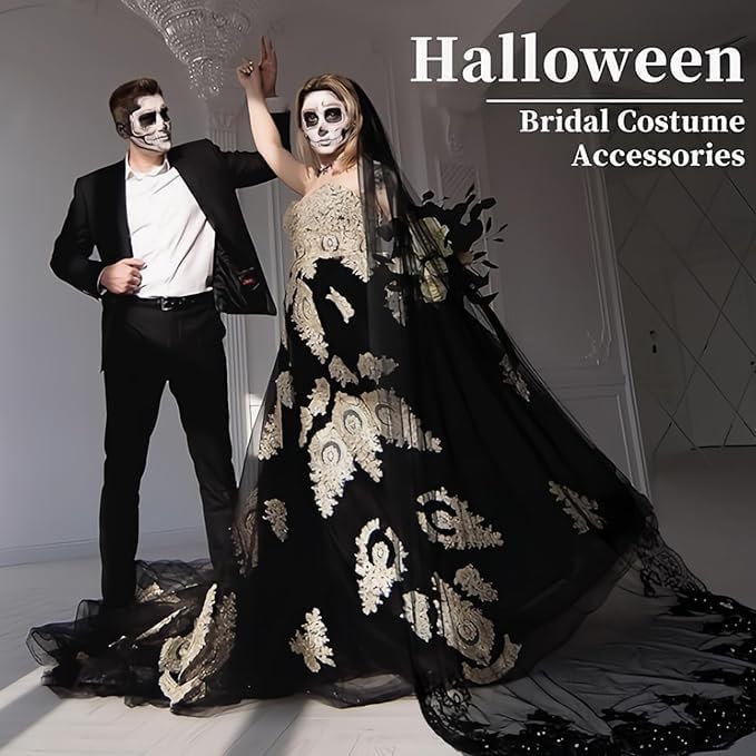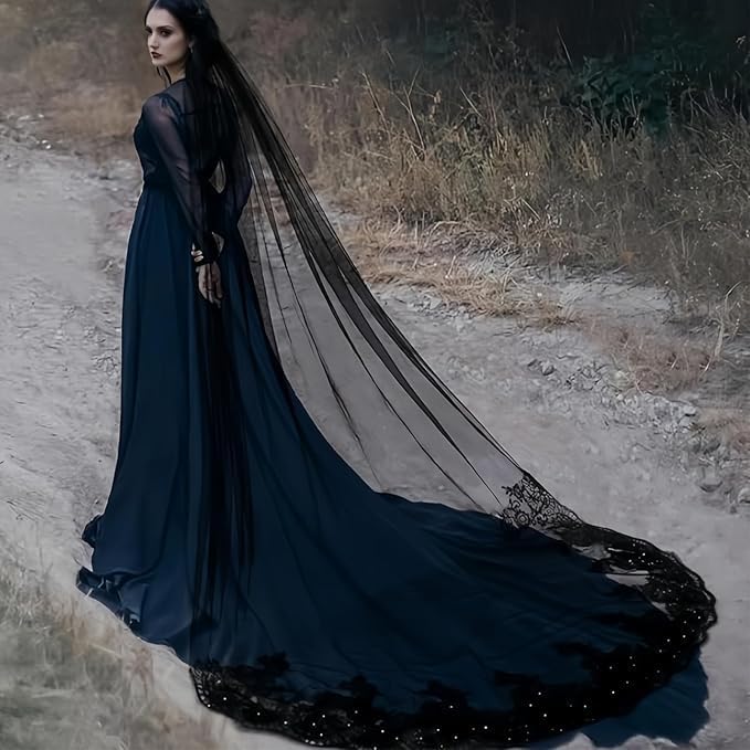 • 2.It's a beautiful one-tier piece that pairs lightweight tulle with intricate lace and shiny sequins, making for a dramatic and romantic look perfect for a traditional church wedding or outdoor celebration.