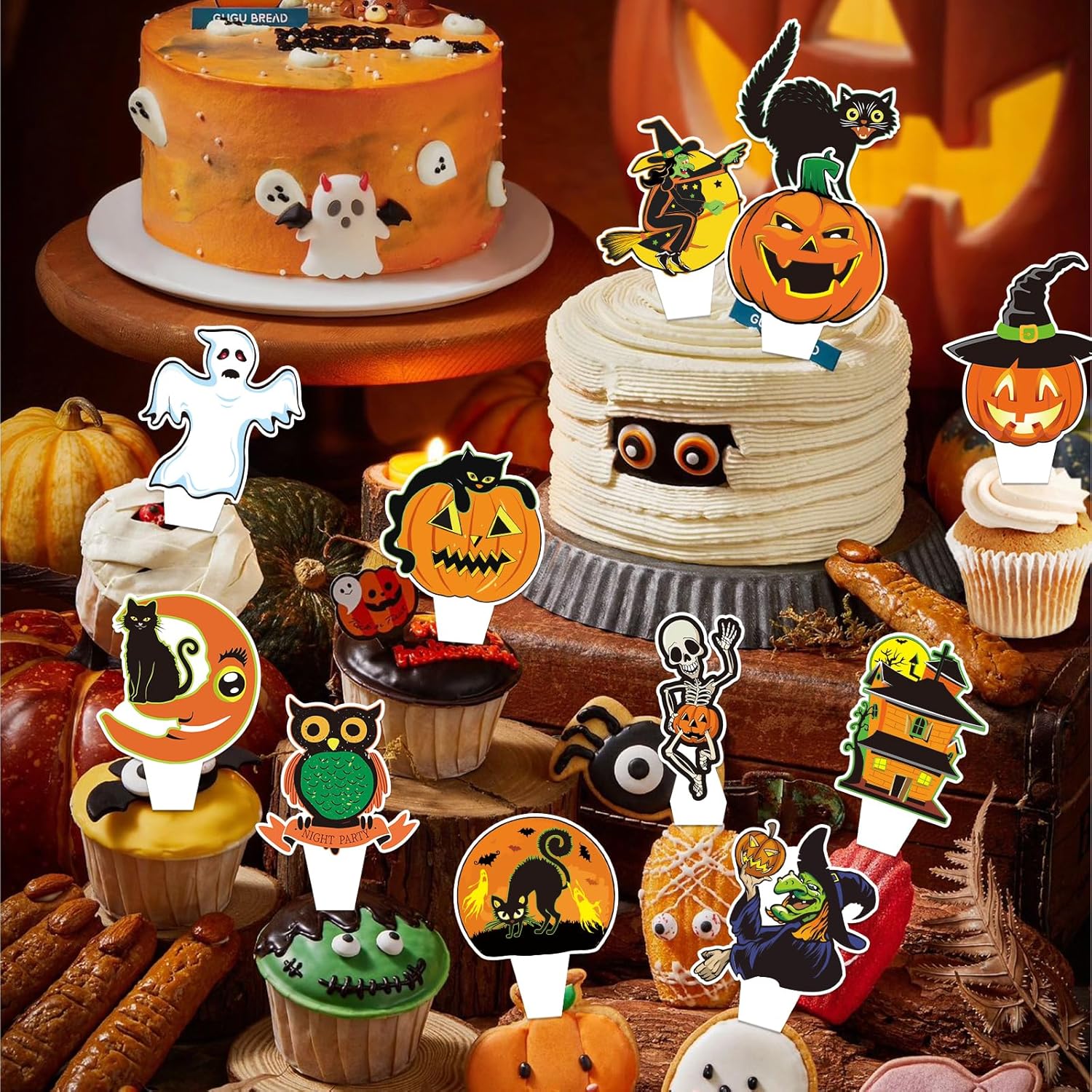 - Halloween Theme: Create a special party with these 24 Halloween cupcake toppers. Each Halloween cupcake topper is perfect for a Halloween-themed party.