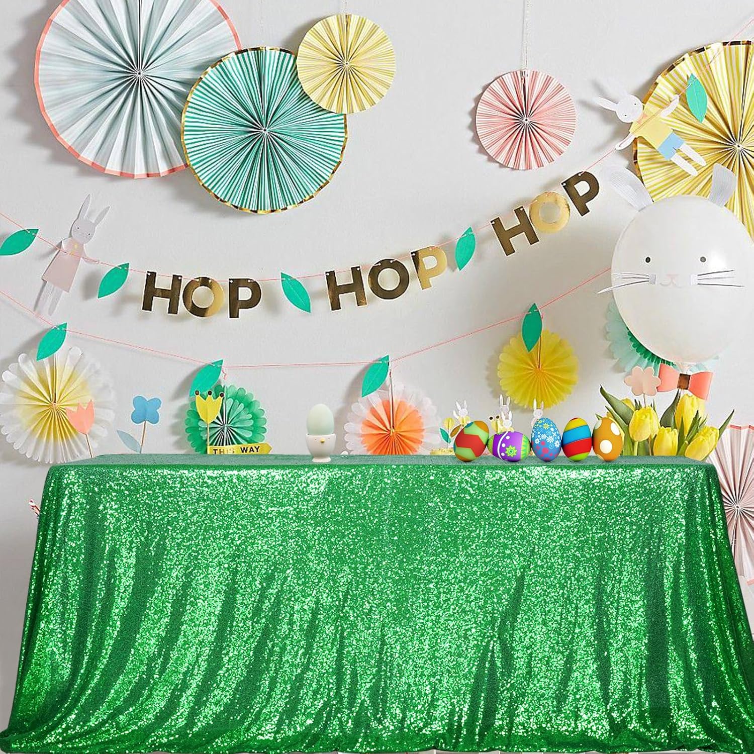 SquarePie Sequin Tablecloth 60 x 102 Inch Green Glitter Table Cloth for Christmas Party Decoration