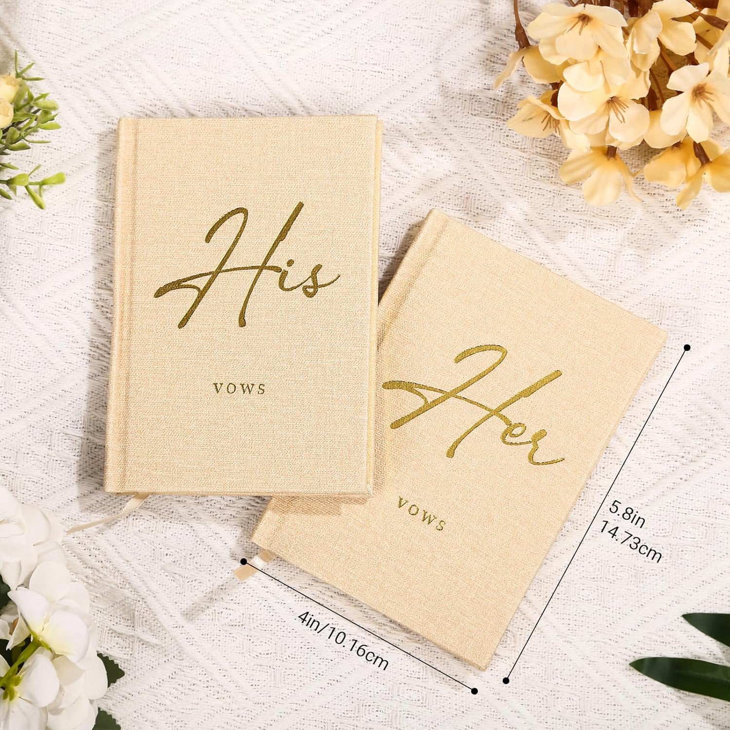 - Timeless Elegance with Linen Covers & Gilded Details-Crafted for couples who value understated luxury, this matching set of vow books his and hers features a linen-textured cover in a warm neutral hue—an elegant backdrop for promises that endure. Radiant gold-gilded edges illuminate every page, while minimalist gold foil accents ("His" and "Her") elevate the design. The tactile linen texture and neutral palette seamlessly blend with any theme, making these wedding vow books his and hers a wedding must have for timeless sophistication.