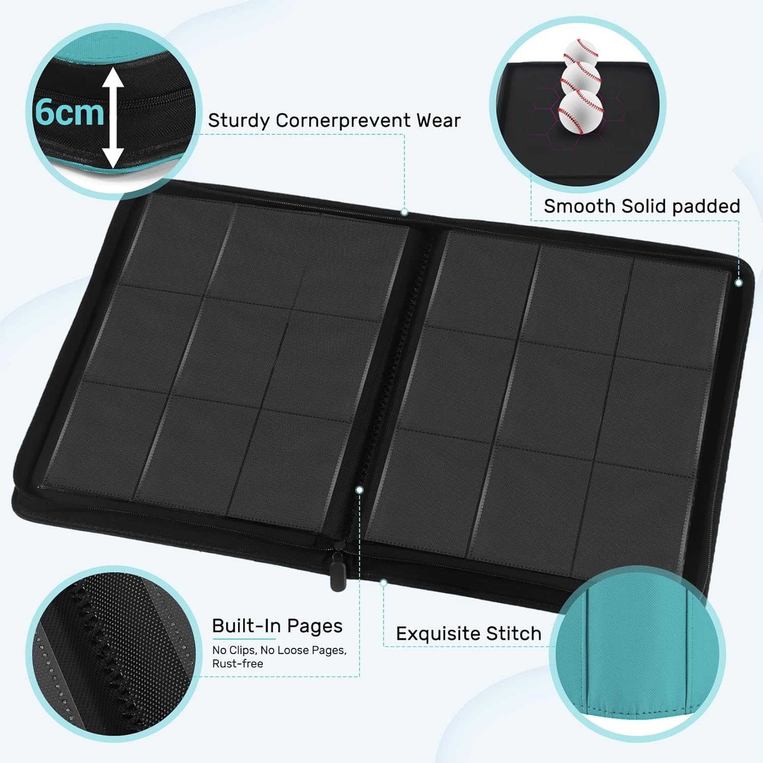 - Maximum Protection: Designed with thickly padded, ultra rigid exterior case to prevent card bending, and durable zipper for further protection from dust and dirt. This water-resistant card binder with premium PU textured faux leather offers trusted durability and superior security for your cards.