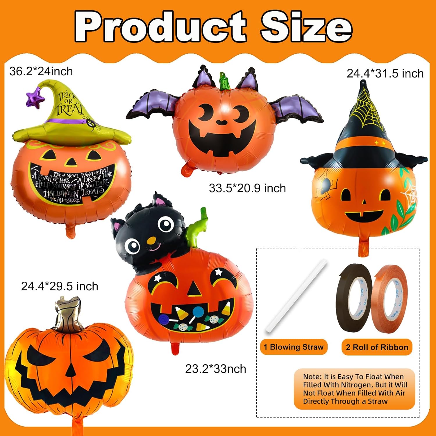 - Quickly Inflate, Safely Hang: This is a set of easy to inflate Halloween balloons, equipped with ribbons and blowing straws, easy to install and can be hung on the wall, door or ceiling immediately; durable foil balloons can stay inflated for days.