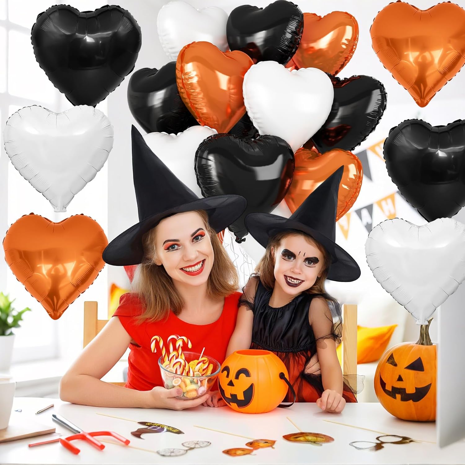 - Charming Black Orange White Heart Balloons: Elevate your celebration with our set of 12 heart-shaped orange black and white and black balloons, each measuring 18 inches. Accompanied by a ribbon, these balloons are ideal for creating a festive and loving atmosphere at any special event.