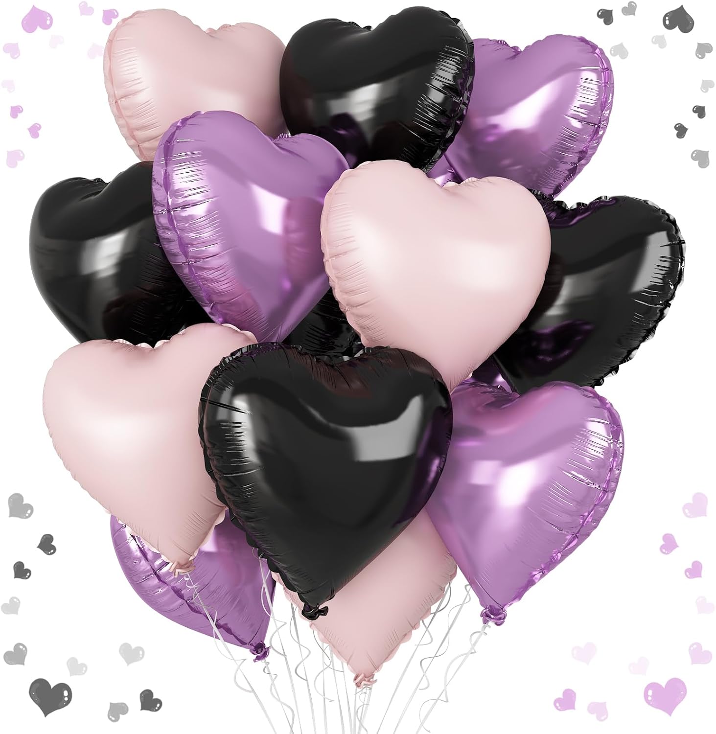 - Charming Purple Pink Black Heart Balloons: Elevate your celebration with our set of 12 heart-shaped baby pink purple and black balloons, each measuring 18 inches. Accompanied by a ribbon, these balloons are ideal for creating a festive and loving atmosphere at any special event.