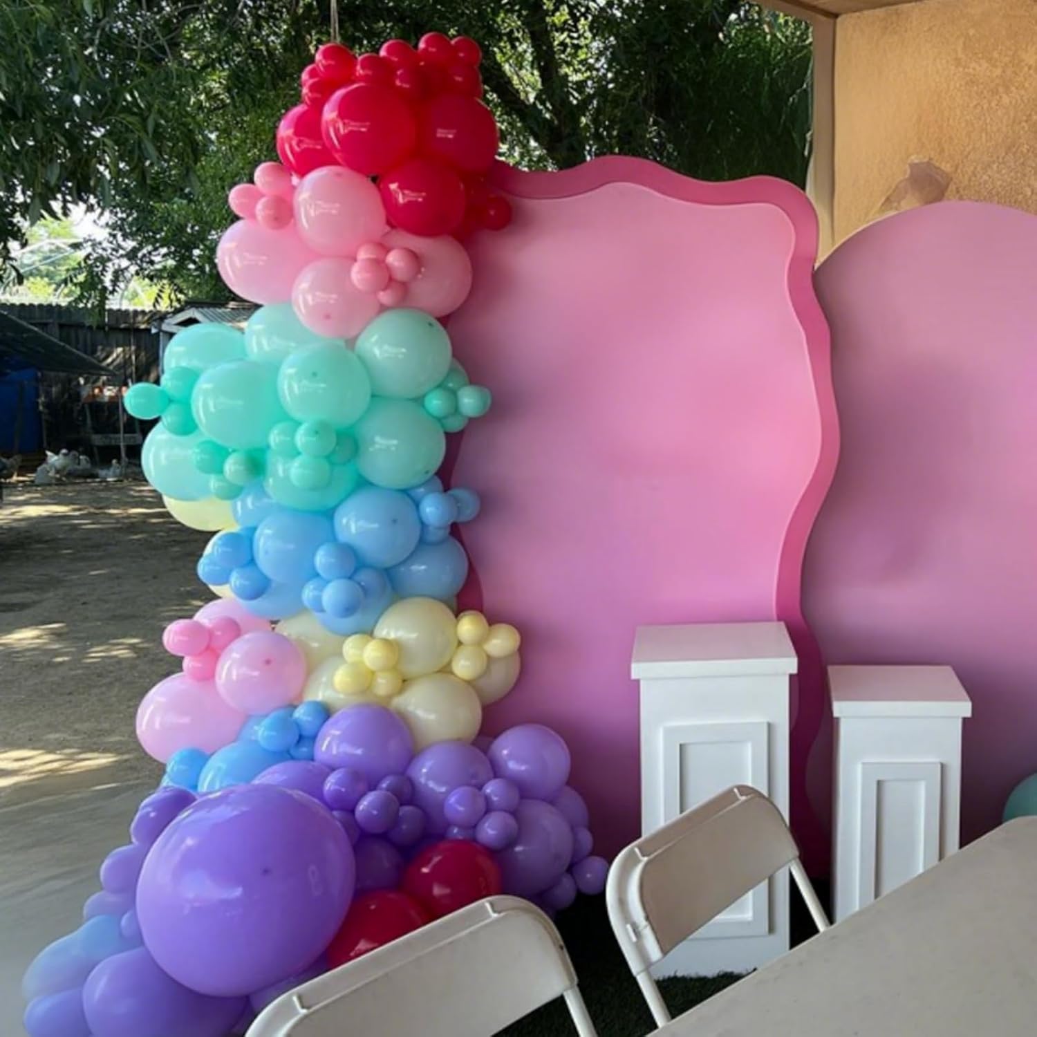 - WIDE APPLICATIONS: The colorful balloons set can be applied as decoration for birthdays, baby showers, weddings, bridal showers, anniversaries, school events, graduation parties, and holiday celebrations, comes with a 10-meter ribbon roll for tying and hanging balloons easily, allowing you to create arches, garlands, table centerpieces, or wall backdrops effortlessly