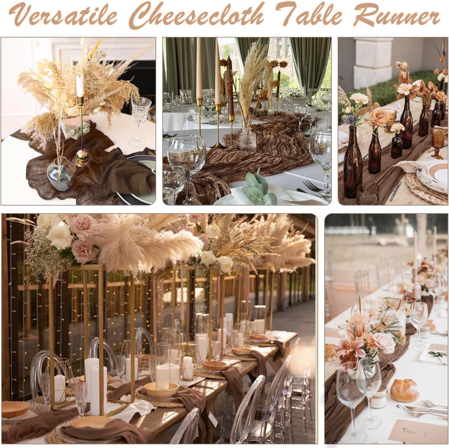 - ☕【Brown Table Runners】You will get 6 pieces 10ft length brown cheesecloth table runner, enough quantity is suitable for wedding banquets and various parties, the size of each dark brown table runner is approximately 35 x 120 inches / 90 x 300 cm, which is large enough to cover rectangle and round tables, can also be spliced together for long tables. Even can also cut it yourself for DIY chair cover sashes or decorative napkins, backdrop draping or even gift wrapping.