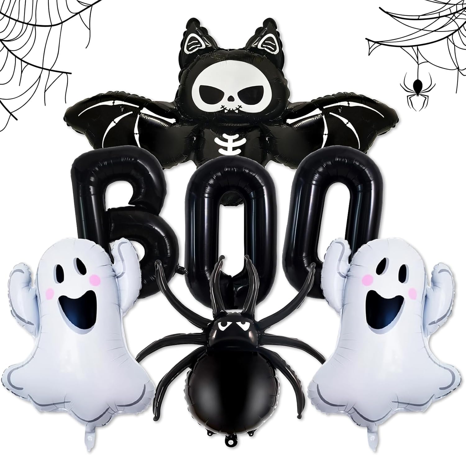 Halloween Balloons Decorations, Black Boo Letter, Ghost, Bat, Spider Foil Balloon for Halloween Party Decorations