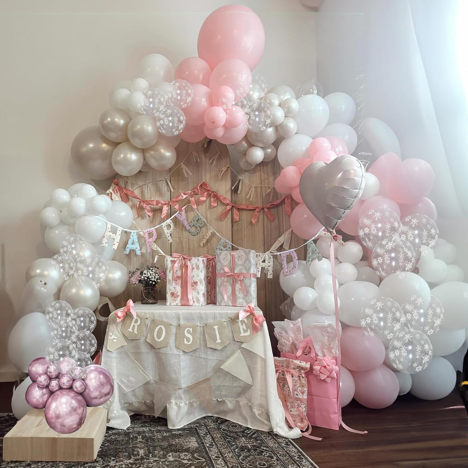 - Ideal for Any Occasion: This versatile balloon set is great for girls princess winter wonderland theme birthday party, bridal shower and wedding decorations. The elegant color scheme of baby pink balloons, metallic pink balloons, white balloons and snowflake print balloons works for both modern and classic themes, perfect for indoor or outdoor parties