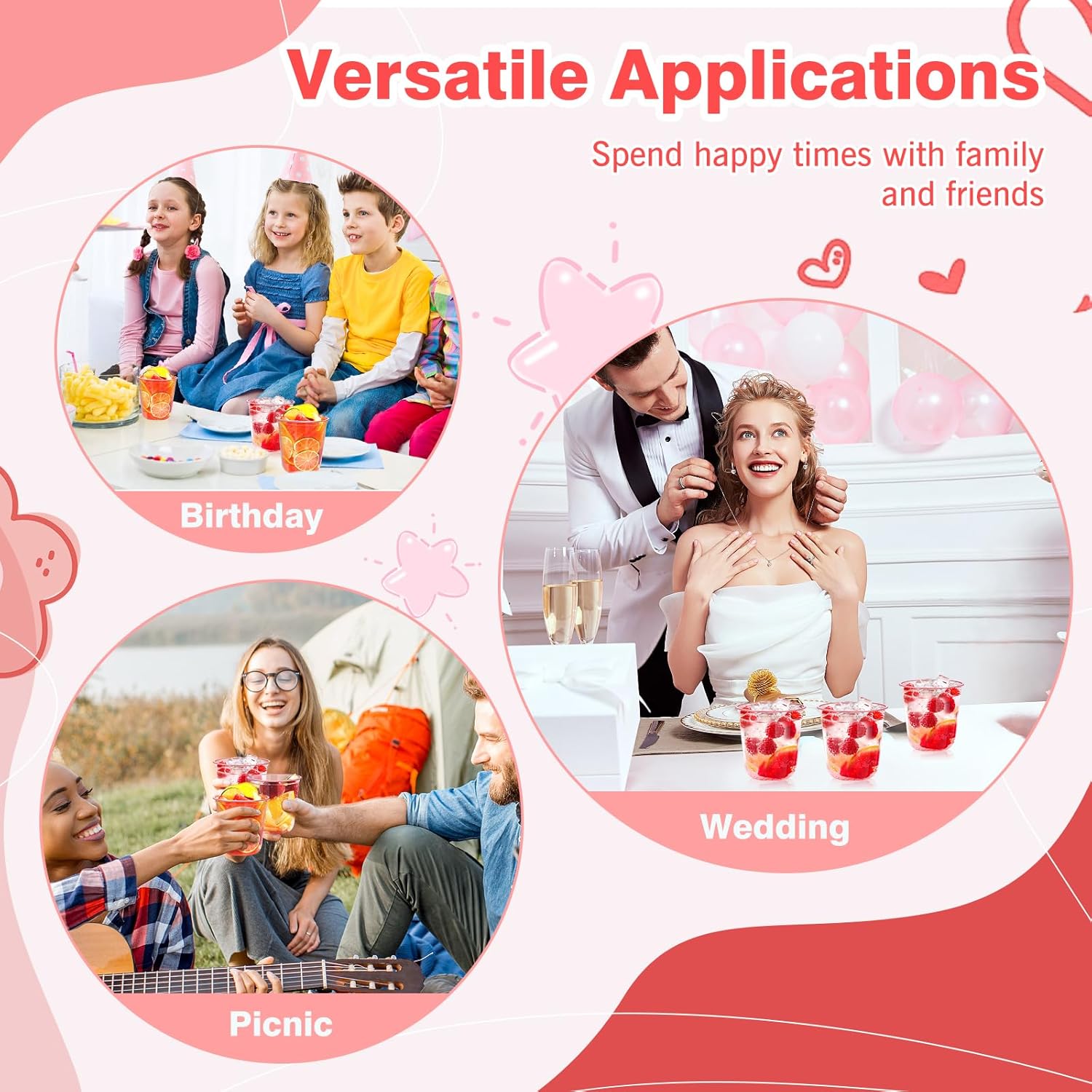 - U-Shape Design: Our plastic wine cups feature a comfortable U-shape design based on ergonomic principles to keep the good times flowing. The rolled rim ensures safe and smooth sipping, making these cute cups perfect for pink-themed parties or girls' gatherings.