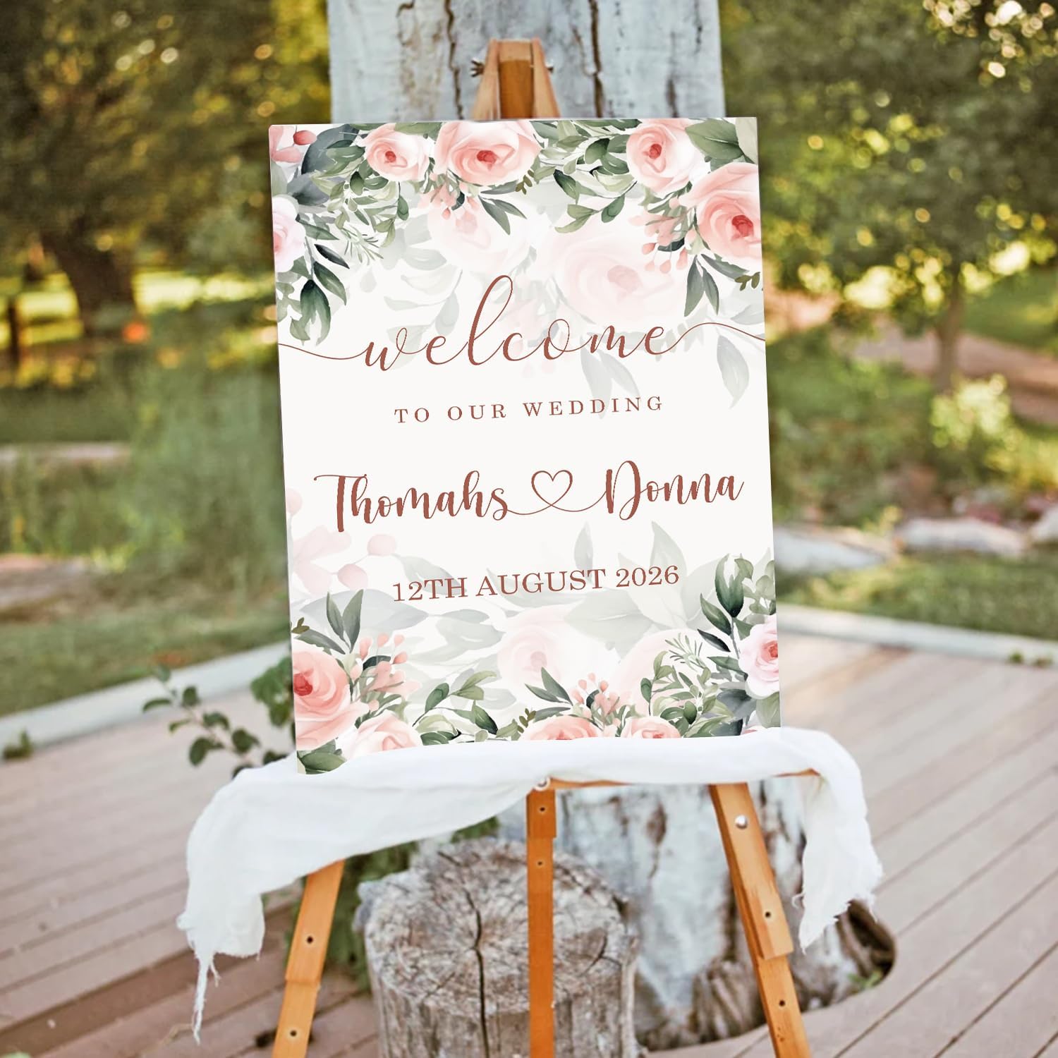 Blush Pink Rose Wedding Welcome Sign, Editable Floral Template, Gentle Modern Printable Sign for Ceremony or Reception