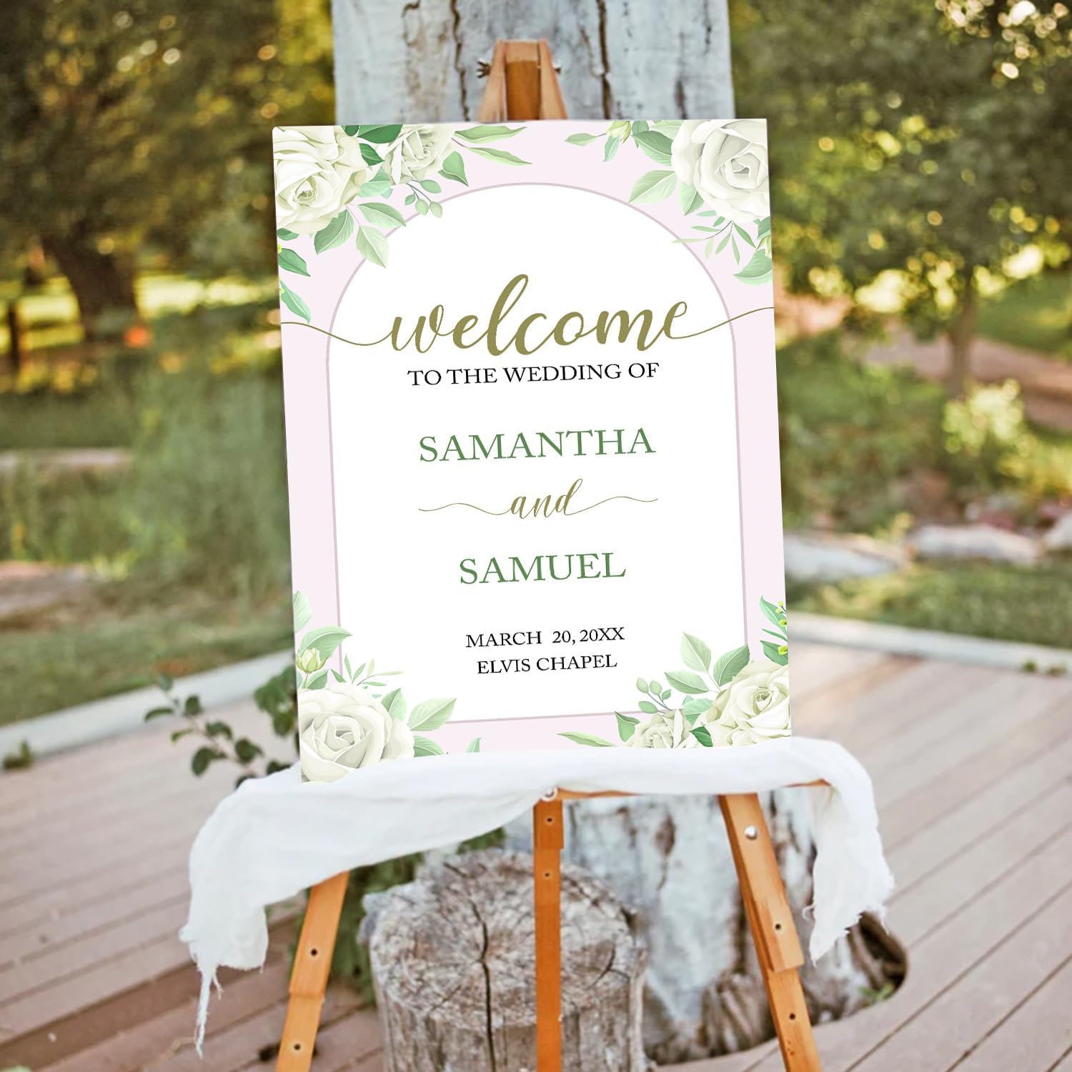 Editable Greenery Wedding Welcome Sign Template, Printable White Floral Sign for Ceremony or Reception, Modern Minimalist Wedding Decor