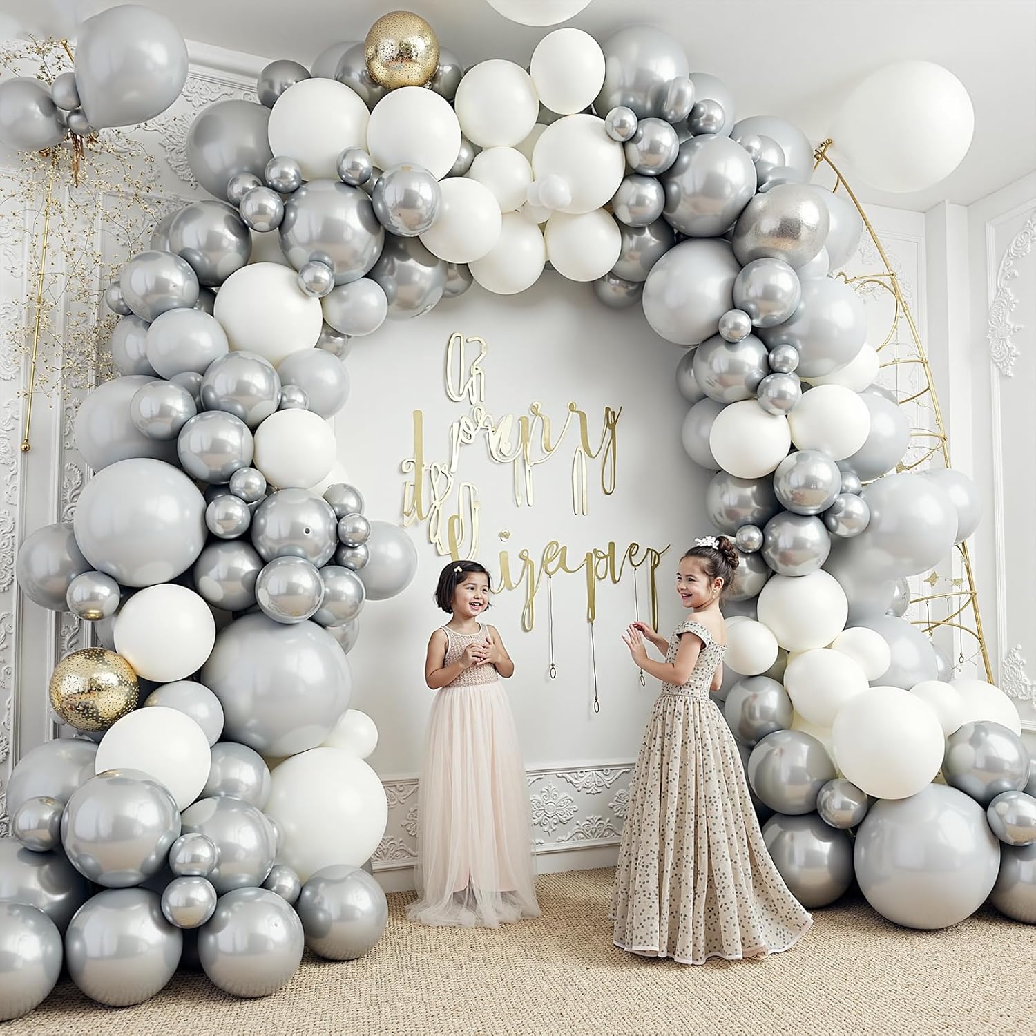 - EASY TO USE: You can white and silver balloons then assemble the balloon arch in the style you wants,balloon arch bring fun to your party and create a memorable party for your family and friend.