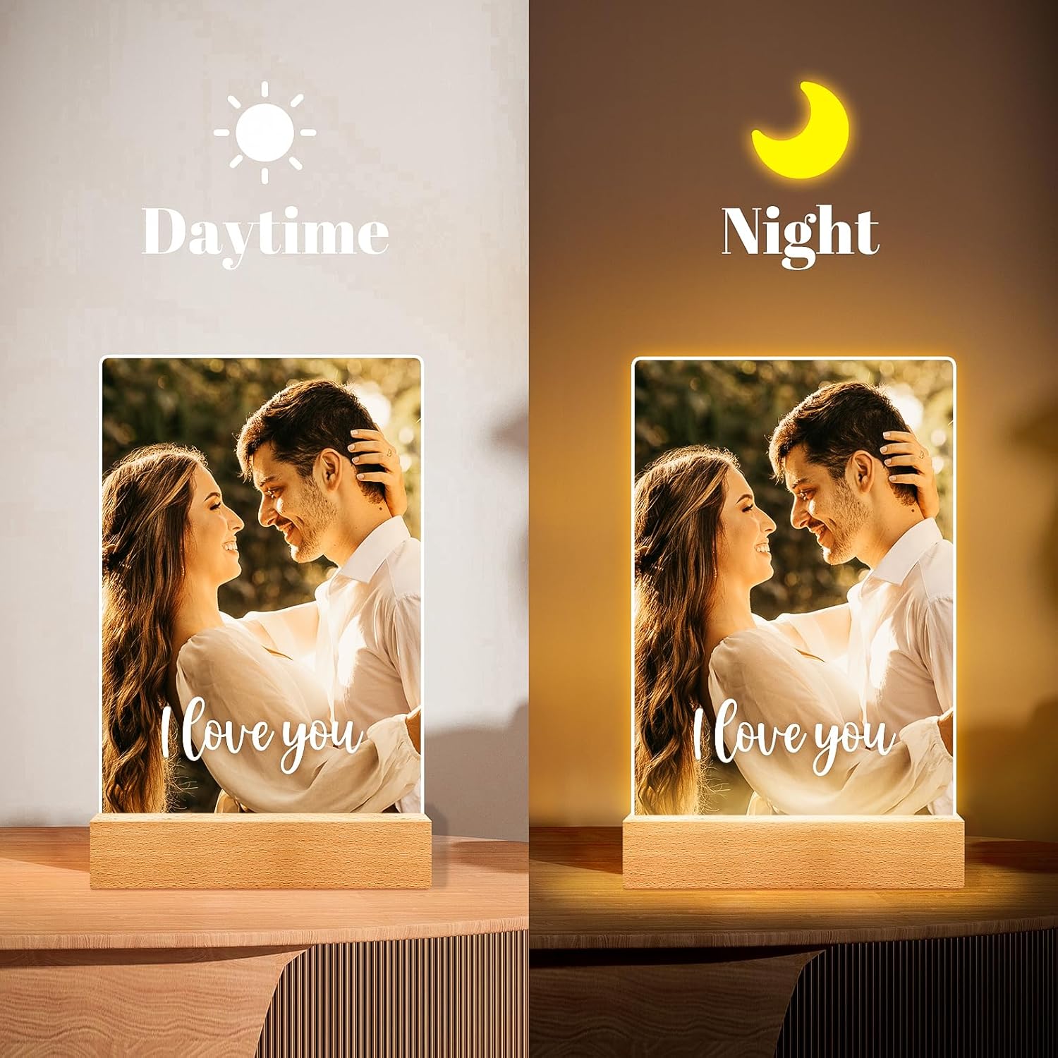 - PREMIUM QUALITY MATERIAL: Made of transparent acrylic material, acrylic glass is less prone to breakage and scratches than traditional glass, which ensures that your personalized photo will remain intact for a long time. Give your family, girlfriend or boyfriend a customized gift that will stand the test of time