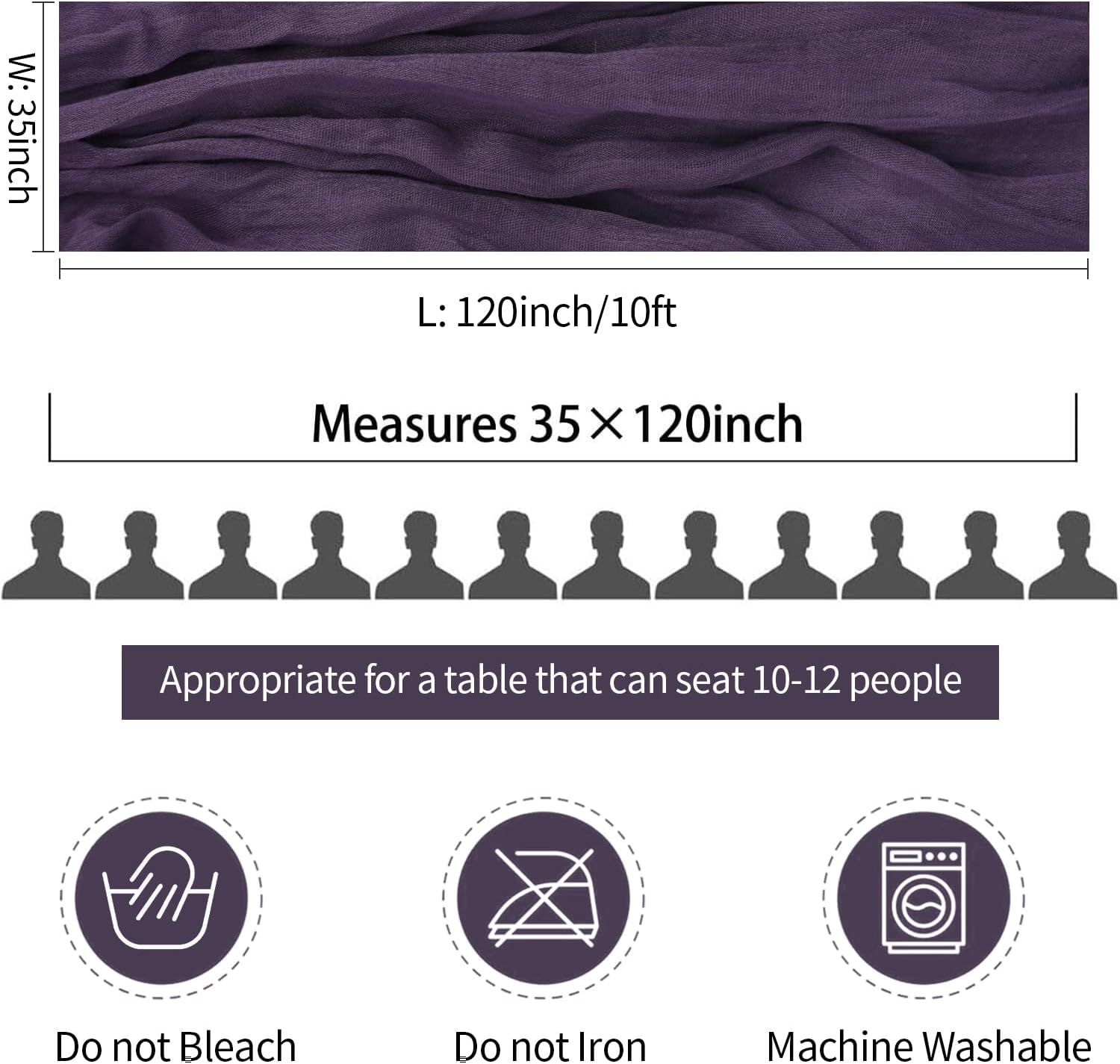 - 🍇【Elegant Design】Rustic dark purple table runner cloth gives your home or party a classy; Ideal to create beautiful folds or leave it flowing loose onto the floor, add a delicate, soft, beautiful touch to your table at any event; A simple and easy way to dress up a table as wrinkled design no ironing is required & they add a soft touch to your decor! You also can tie a bow to make the lavender table runner gauze look beautiful, it can also be applied as an ornament for chair covers, sashes or decorative napkins, backdrop draping, adds a romantic atmosphere to your wedding or special party to impress guests.