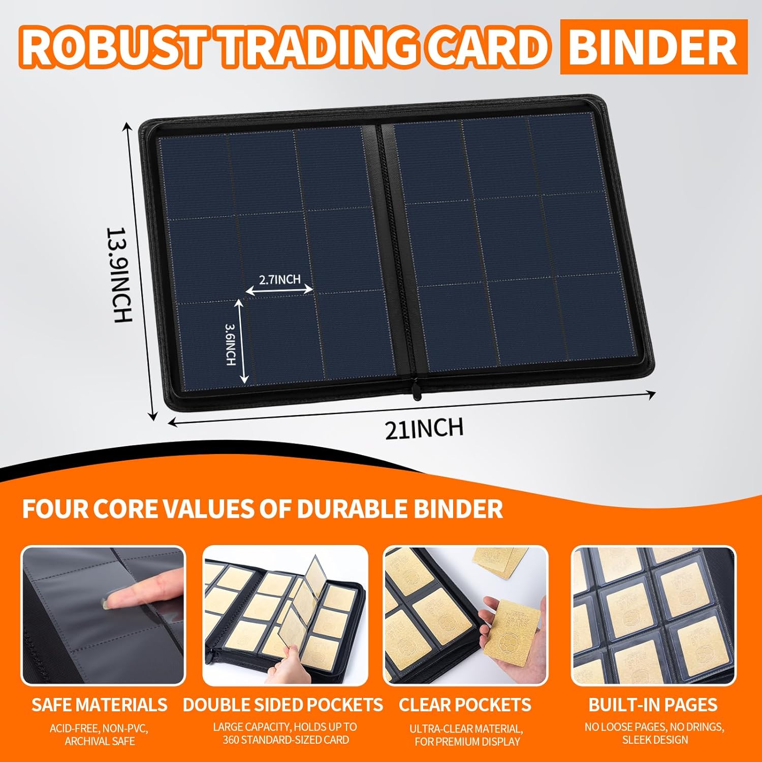 - 【360-Card Capacity】Finally a home for all your cards! This Card Collection Binder (35x26.7x3.8cm) comes with 20 pages (9 slots per page)—say goodbye to lost treasures and messy stacks.