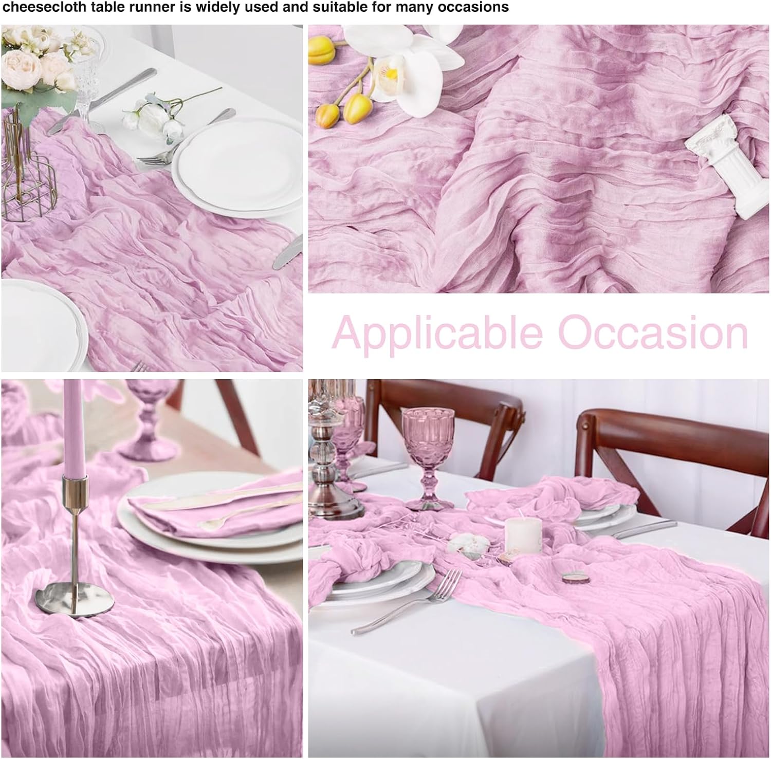 - 【Widely Occasion】: Pink cheese cloth table runner looks nice on various occasions, such as wedding, baby shower, bridal showers, birthday parties, theme party, engagement banquet, candy buffets, the top of the piano, fireplace, dessert tables, weddings arch, Valentine's Day, Thanksgiving, Christmas and other special occasions. The pretty table runner well decorates home, hotel, wedding, parties, grand estates and gardens and more, that makes your life chic.