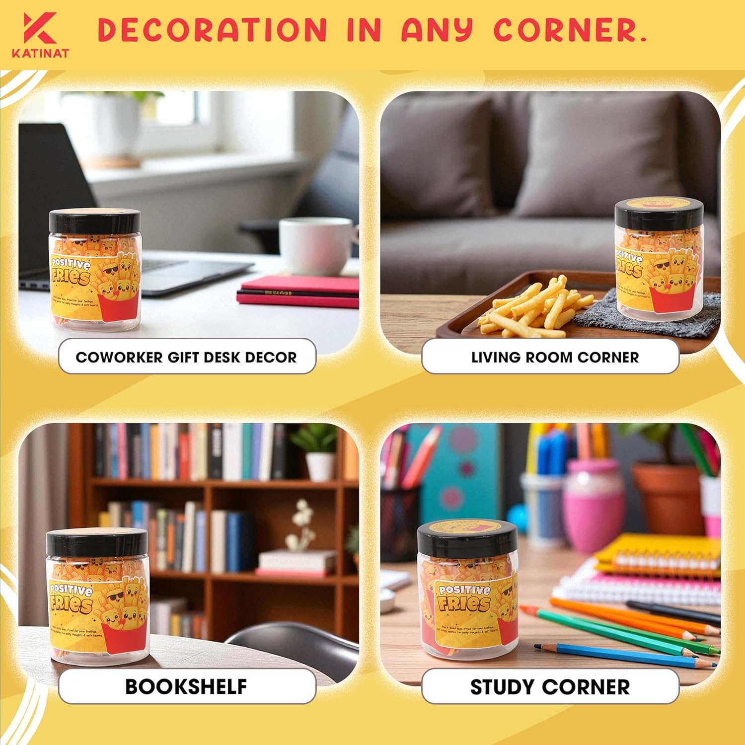 - π 60 Fries-Shaped Affirmation Cards β This jar is packed with 60 hilarious and uplifting cards shaped like mini Fries! Each one delivers a bite-sized boost of encouragement to brighten your day.