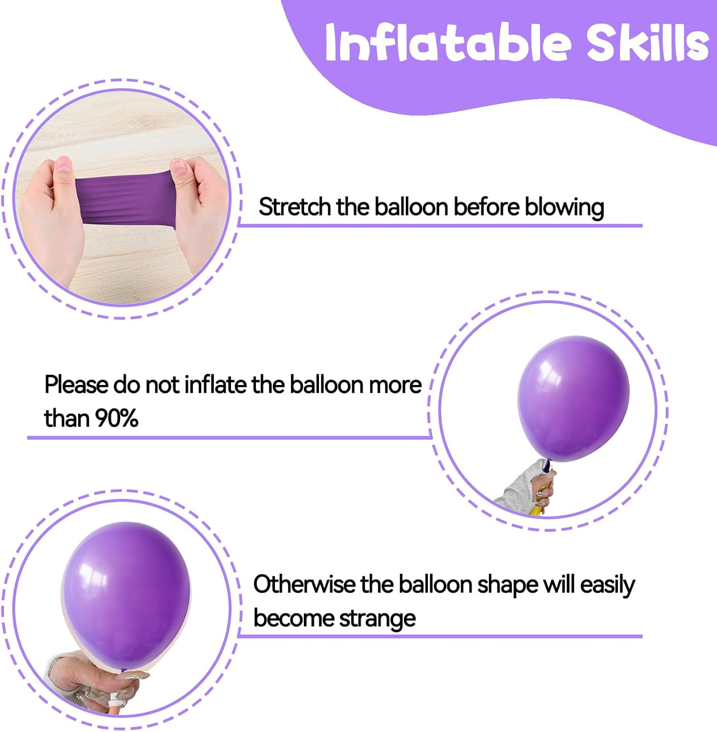 - Note: When you receive these dark balloons, the color before inflation usually looks black, and the color after inflation is exactly what you want. Please do not over-inflate balloons and avoid sunburn, overheating, sharp objects and excessive friction