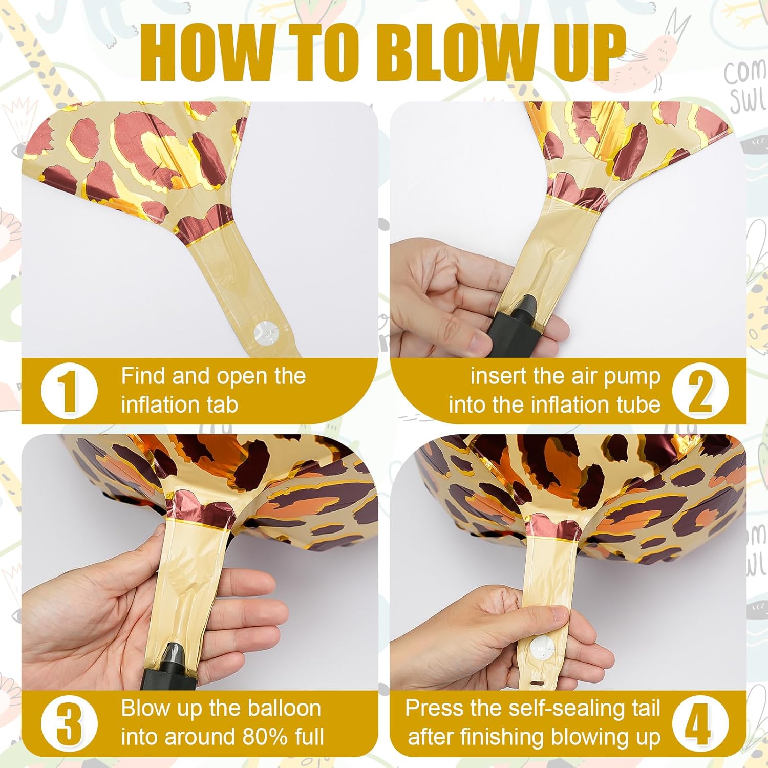 - Easy to Use: Use an electric pump to inflate the metallic gold cheetah balloon until the creases disappear, achieving a round and smooth effect. Stop inflating as soon as the creases disappear.
