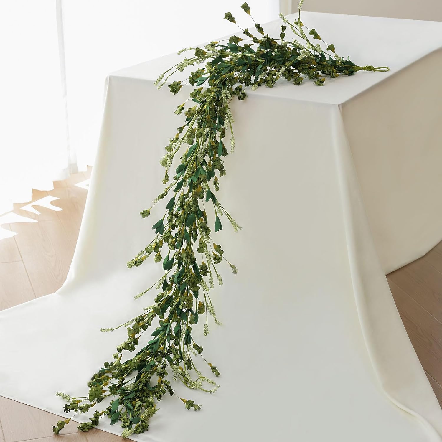 Mizii Fall Garland Artificial Flower Garlands 6 Feet Fake Wildflower Floral Garland Hanging Vines Flowers Decorations for Mantle Table Centerpieces Room Wall Fireplace Wedding Fall Decor (Green)